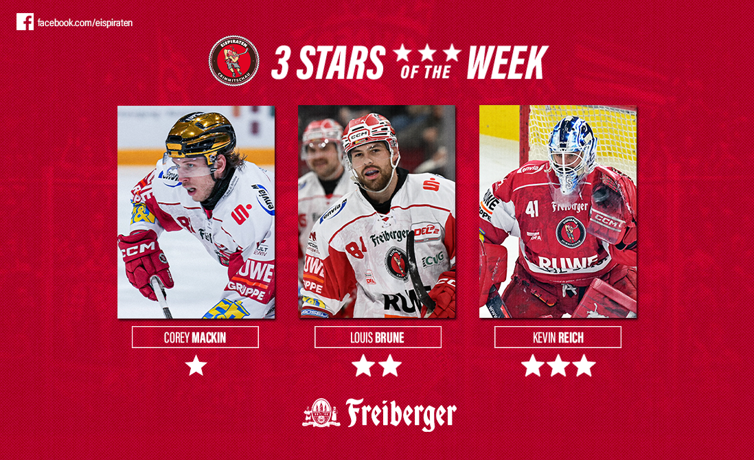 Die Eispiraten Crimmitschau haben in der vergangenen Woche gleich drei Spiele absolvieren müssen. Dabei konnten die Westsachsen zunächst gegen die DEG mit 5:2 gewinnen, mussten sich am Freitagabend dem EC Bad Nauheim in der Overtime mit 2:3 geschlagen geben und verloren letztlich das Heimspiel gegen Rosenheim mit 0:3. Auch nach diesen drei Partien hatten die Fans der Eispiraten auf Facebook die Möglichkeit, ihren „Freiberger – Star of the week“ zu voten.