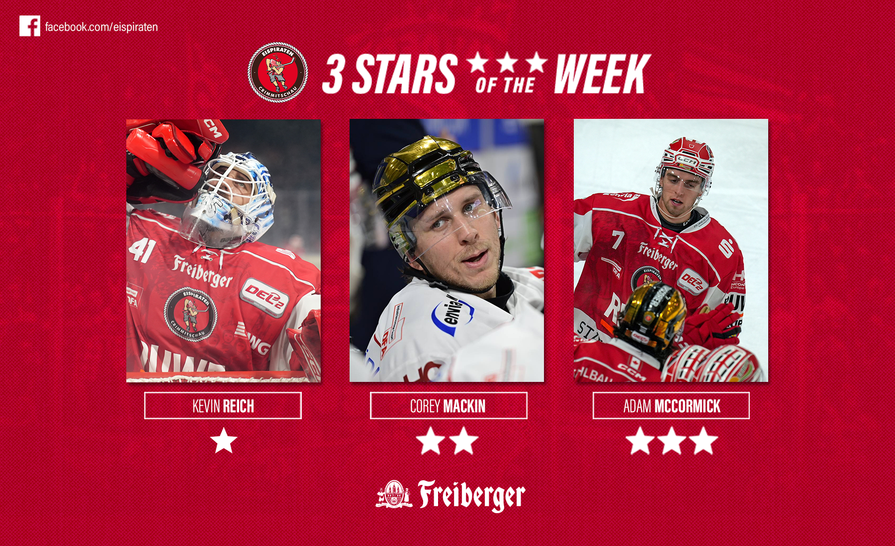 Kevin Reich setzte sich mit 120 Stimmen an die Spitze und wurde damit zum verdienten Star der Woche gewählt. Der Torhüter feierte am Freitagabend seinen ersten Shutout im Eispiraten-Trikot und blieb bei 25 Schüssen der Gäste ohne Gegentreffer. Mit mehreren spektakulären Paraden – darunter zwei entschärfte Alleingänge – war Reich der Garant für den Heimsieg gegen Regensburg. Mit Ruhe, Übersicht und enormer Präsenz stellt Reich den sicheren Rückhalt der Westsachsen dar.