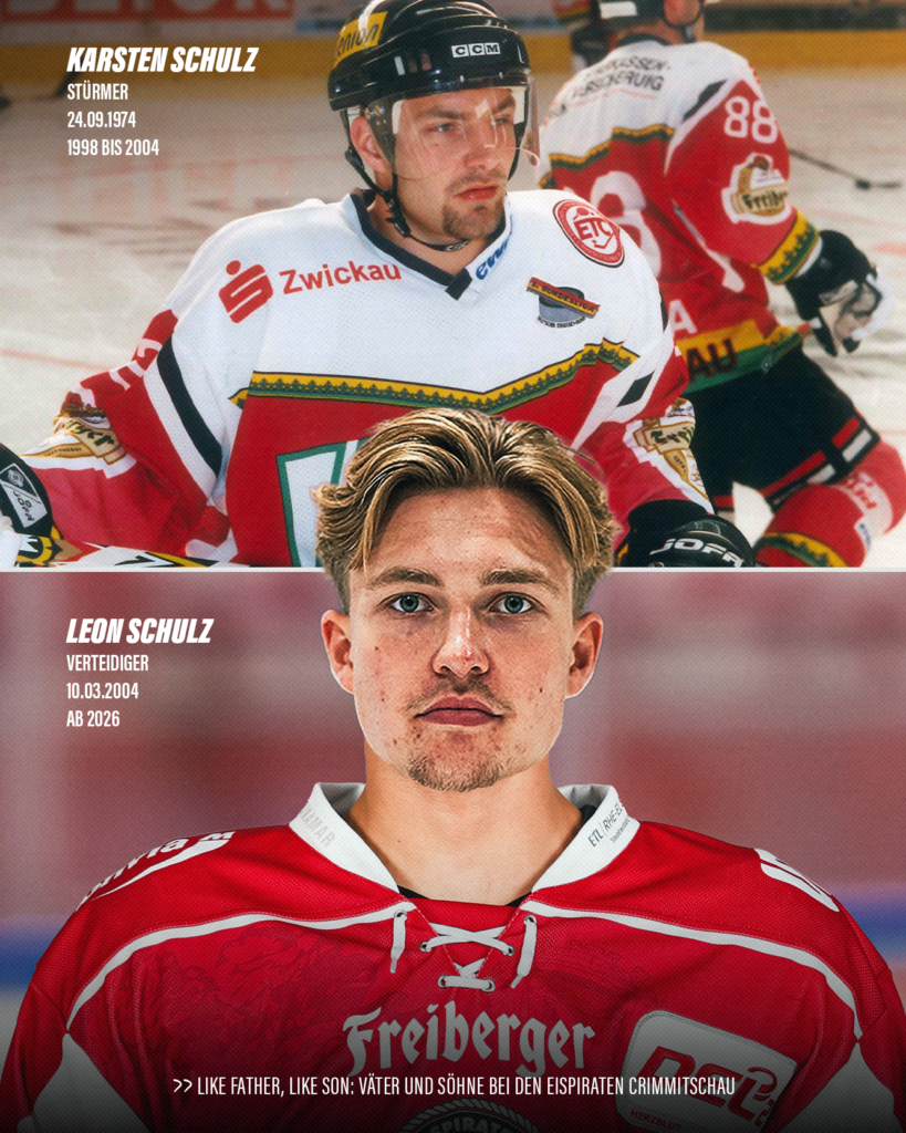 Wie der Vater, so der Sohn – oder: Der Apfel fällt nicht weit vom Stamm. Mit Leon Schulz haben die Eispiraten ein weiteres spannendes Talent unter Vertrag genommen: Der Sohn von ETC-Kultspieler Karsten Schulz erhält einen Tryout-Vertrag und tritt damit in die Fußstapfen seines Vaters.
